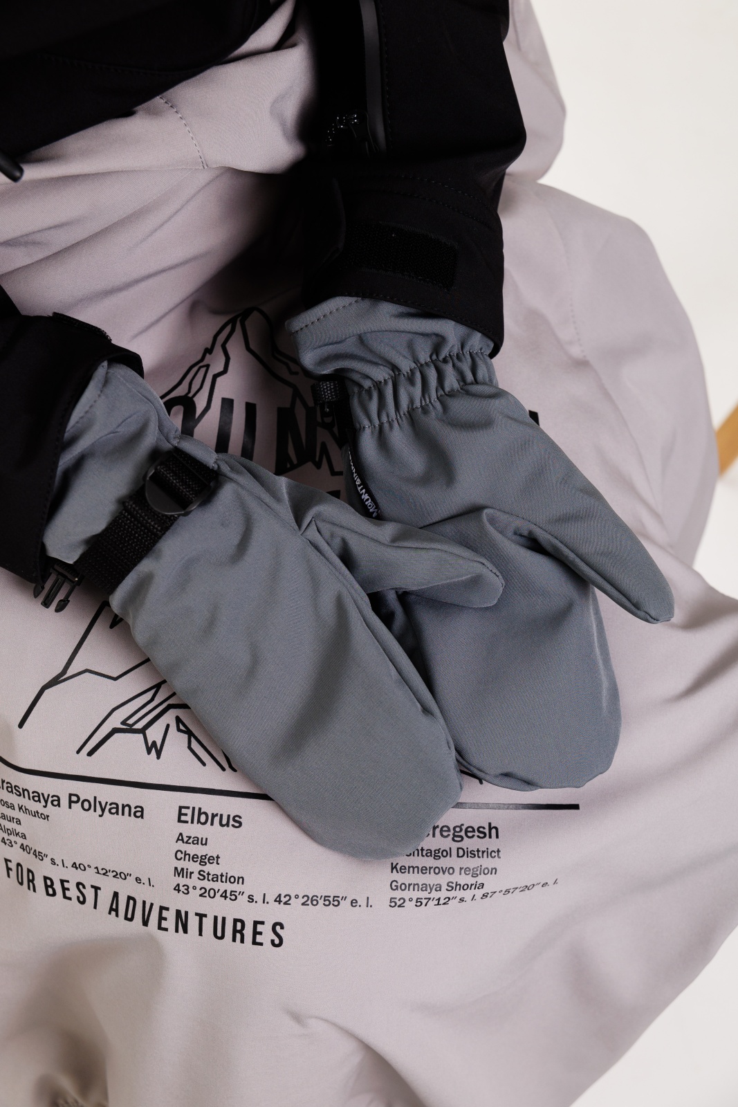 • Резинка и стропа на запястье: препятствуют попаданию снега внутрь варежек, обеспечивая дополнительную защиту.