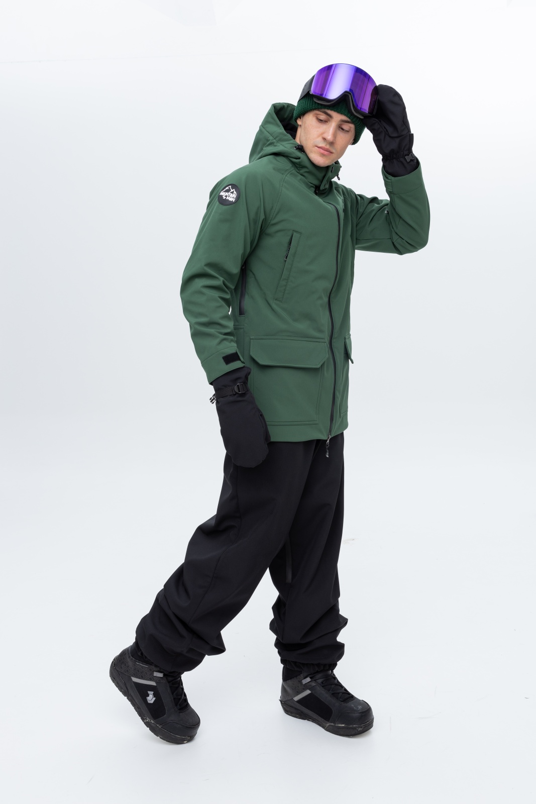Сноубордическая куртка Ranger в глубоком зелёном цвете Lost Island — для тех, кто не ищет лёгких путей. Она создана, чтобы выдерживать — ветра, снег, обледенелые трассы и суровые спуски. Эта модель сочетает уверенный стиль милитари с продуманной защитой от ветра, влаги и холода: мембрана Softshell 10.000/10.000, прочный полиэстер и конструкция, продуманная до мелочей.