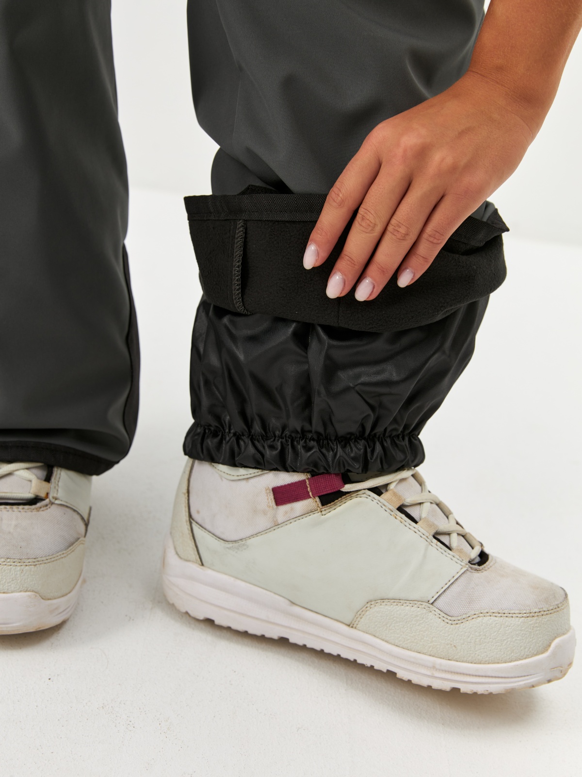 - Эластичные снегозащитные гетры с силиконовой лентой — сохраняют сухость внутри и фиксируются на ботинках.