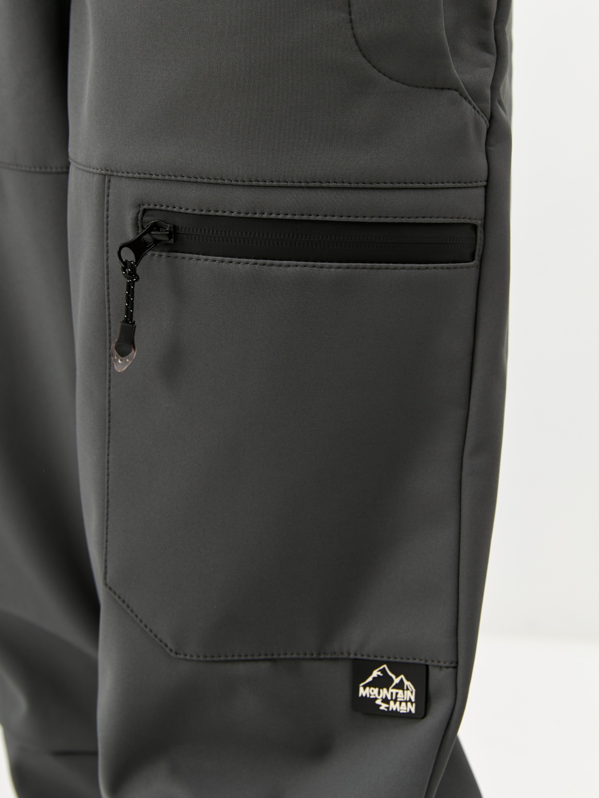 - Усиленные вставки внизу штанин защищают ткань от порезов и износа.
