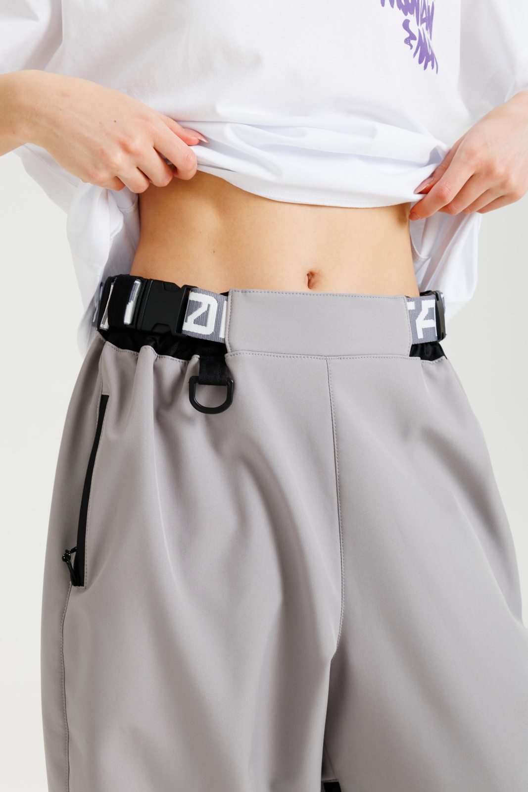 • Брендированный пояс и эластичная резинка на талии — стильный акцент и дополнительная фиксация.