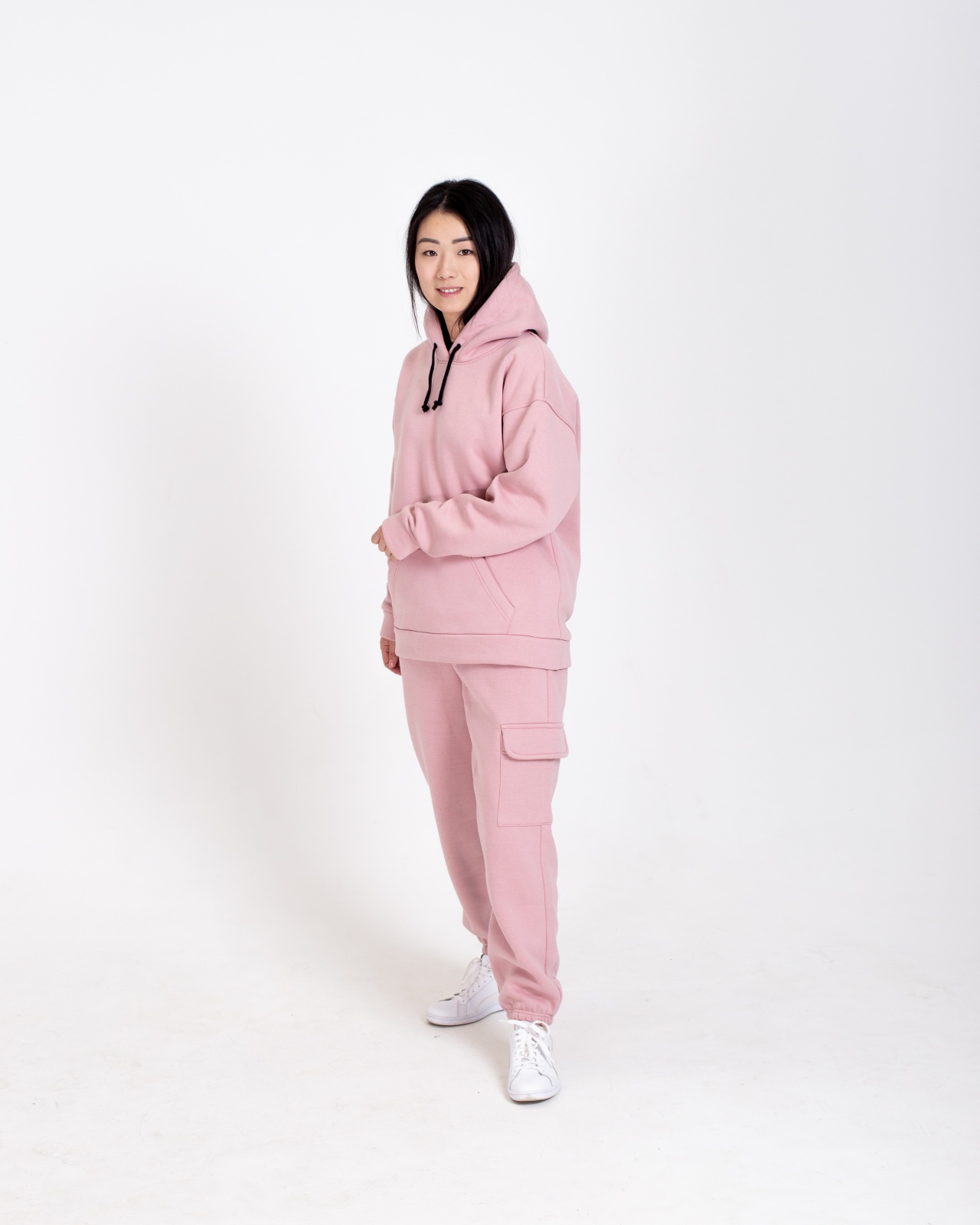 Свободный крой, унисекс-дизайн и нежный пудрово-розовый оттенок делают костюм универсальным и удобным для мужчин и женщин. Комплект включает в себя худи с капюшоном и джоггеры — тёплый спортивный костюм отлично садится по фигуре, не сковывает движений и подходит на температуру от +5 до +18°C.