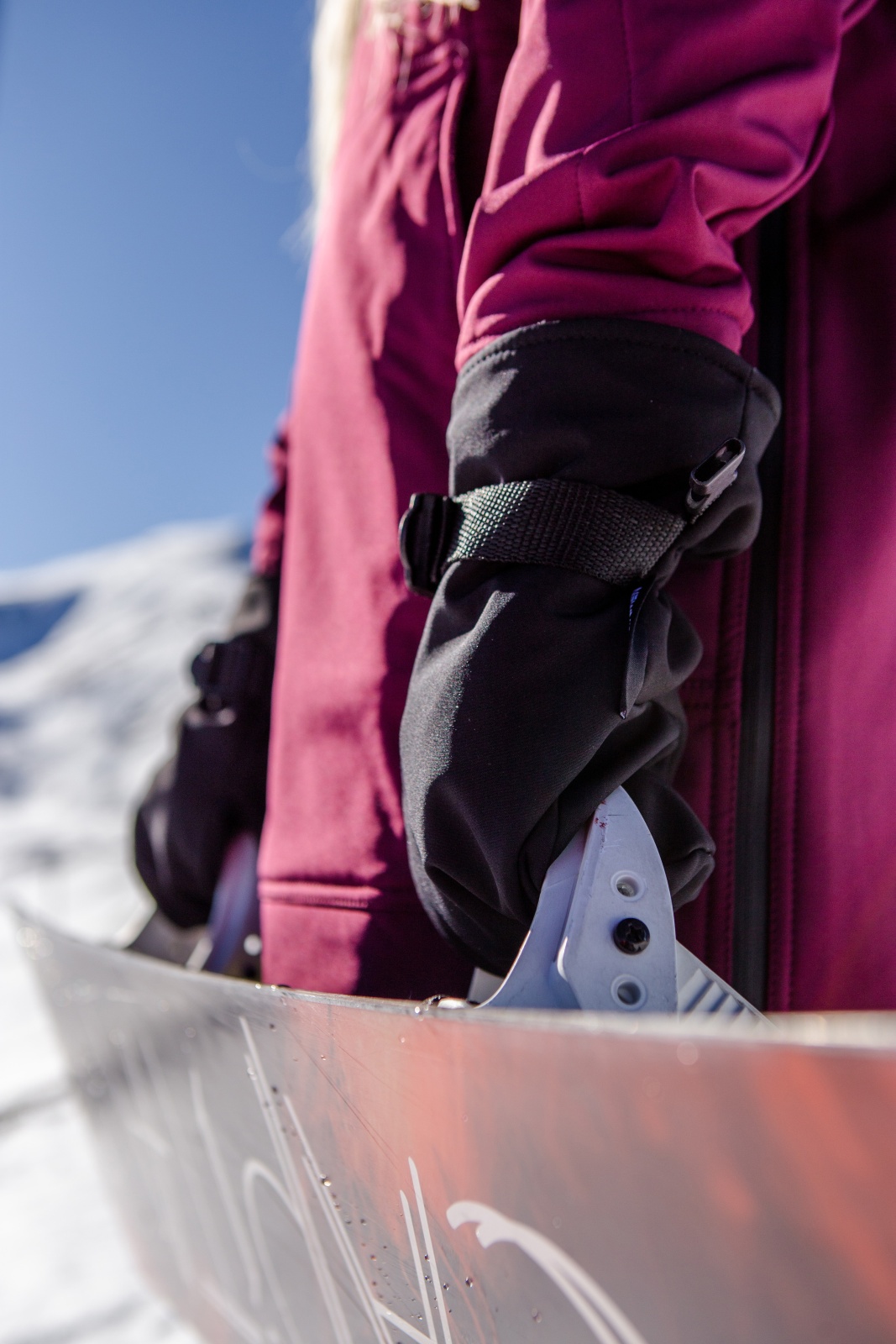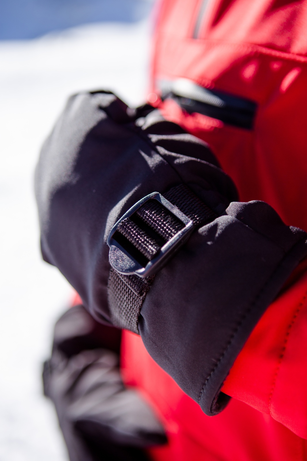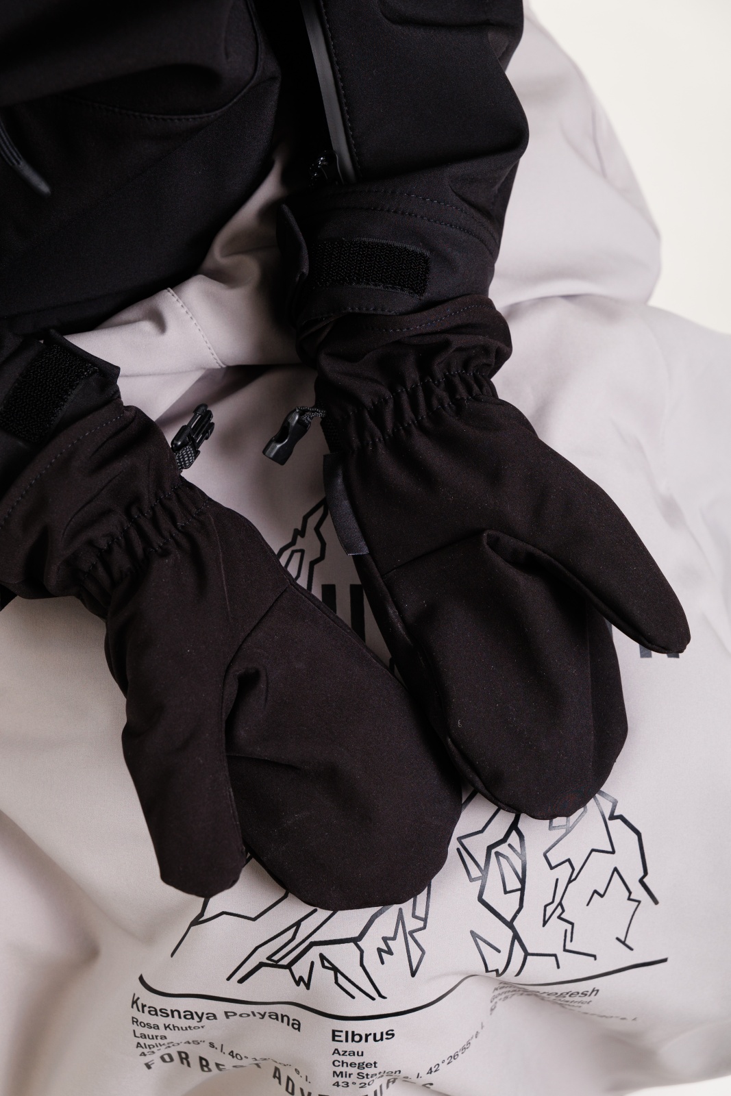 - Резинка и стропа на запястье: препятствуют попаданию снега внутрь варежек, обеспечивая дополнительную защиту.