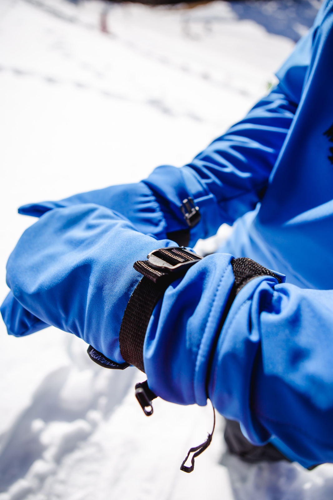 - Резинка и стропа на запястье: препятствуют попаданию снега внутрь варежек, обеспечивая дополнительную защиту.
