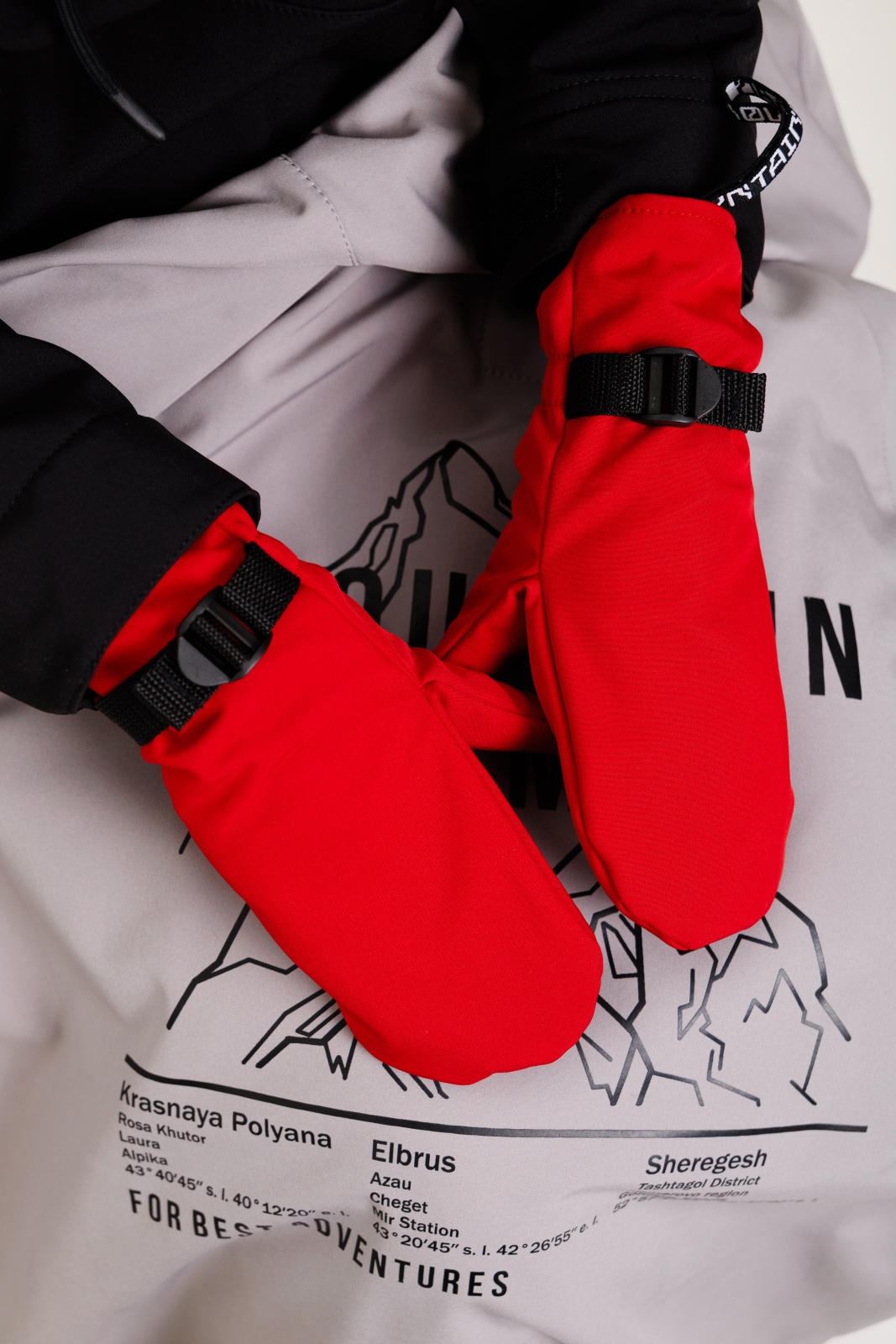 - Резинка и стропа на запястье: препятствуют попаданию снега внутрь варежек, обеспечивая дополнительную защиту.