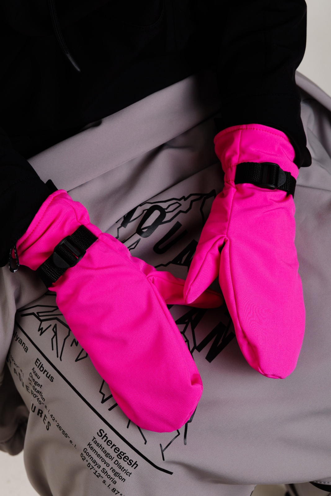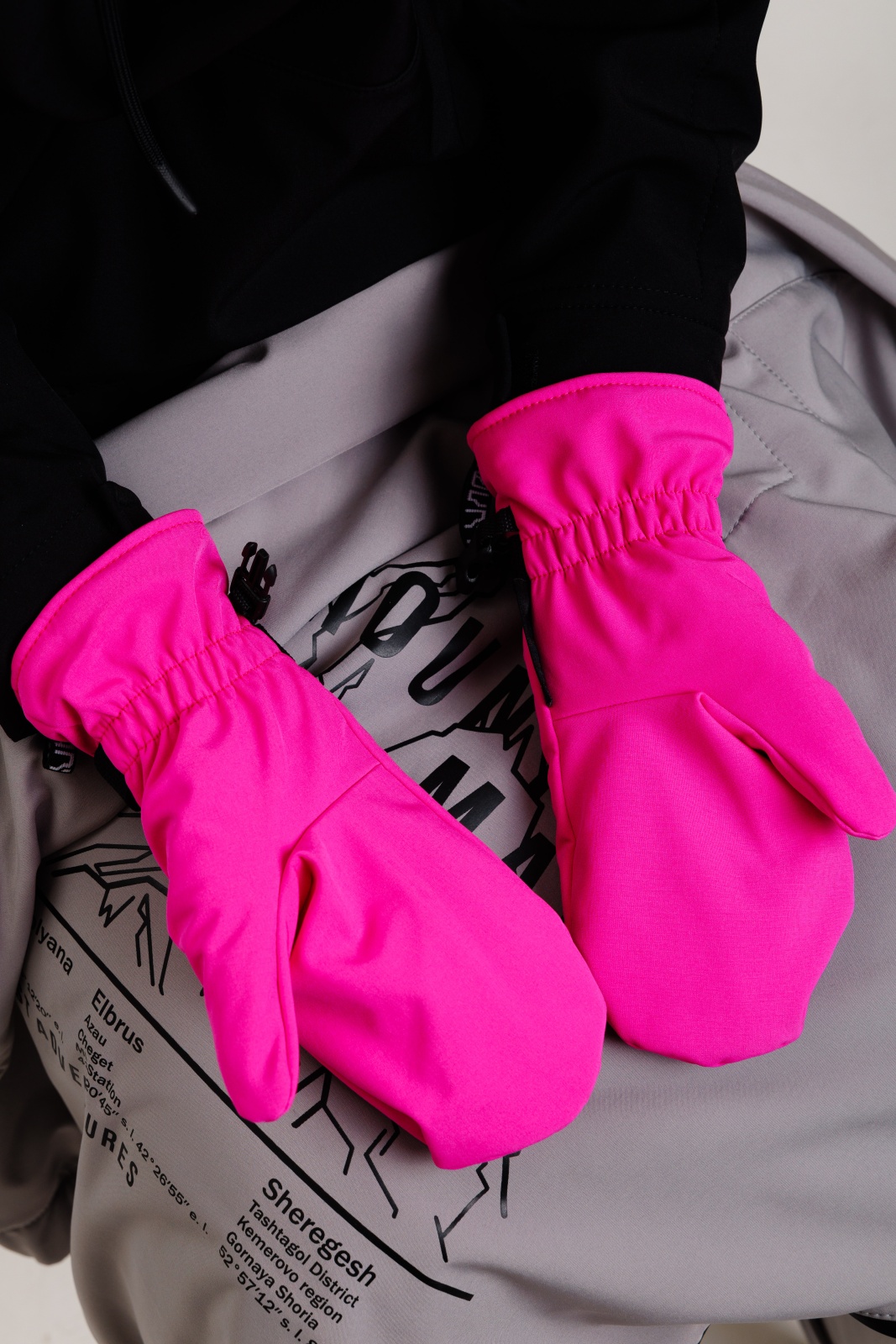 - Резинка и стропа на запястье: препятствуют попаданию снега внутрь варежек, обеспечивая дополнительную защиту.
