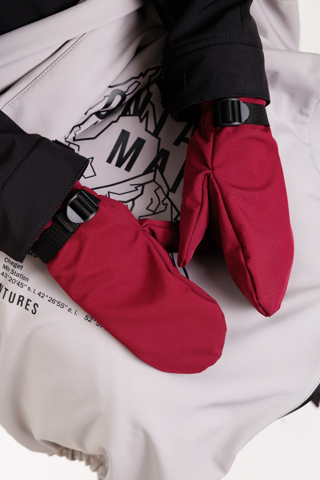 - Резинка и стропа на запястье: препятствуют попаданию снега внутрь варежек, обеспечивая дополнительную защиту.